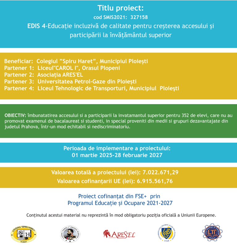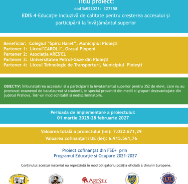 EDIS 4, Anunț selectie Grup tinta, Liceul Carol I Plopeni. Publicat azi 26.08.2025